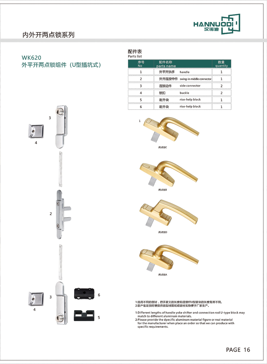 WK620外平開兩點鎖組件(U型插坑式):